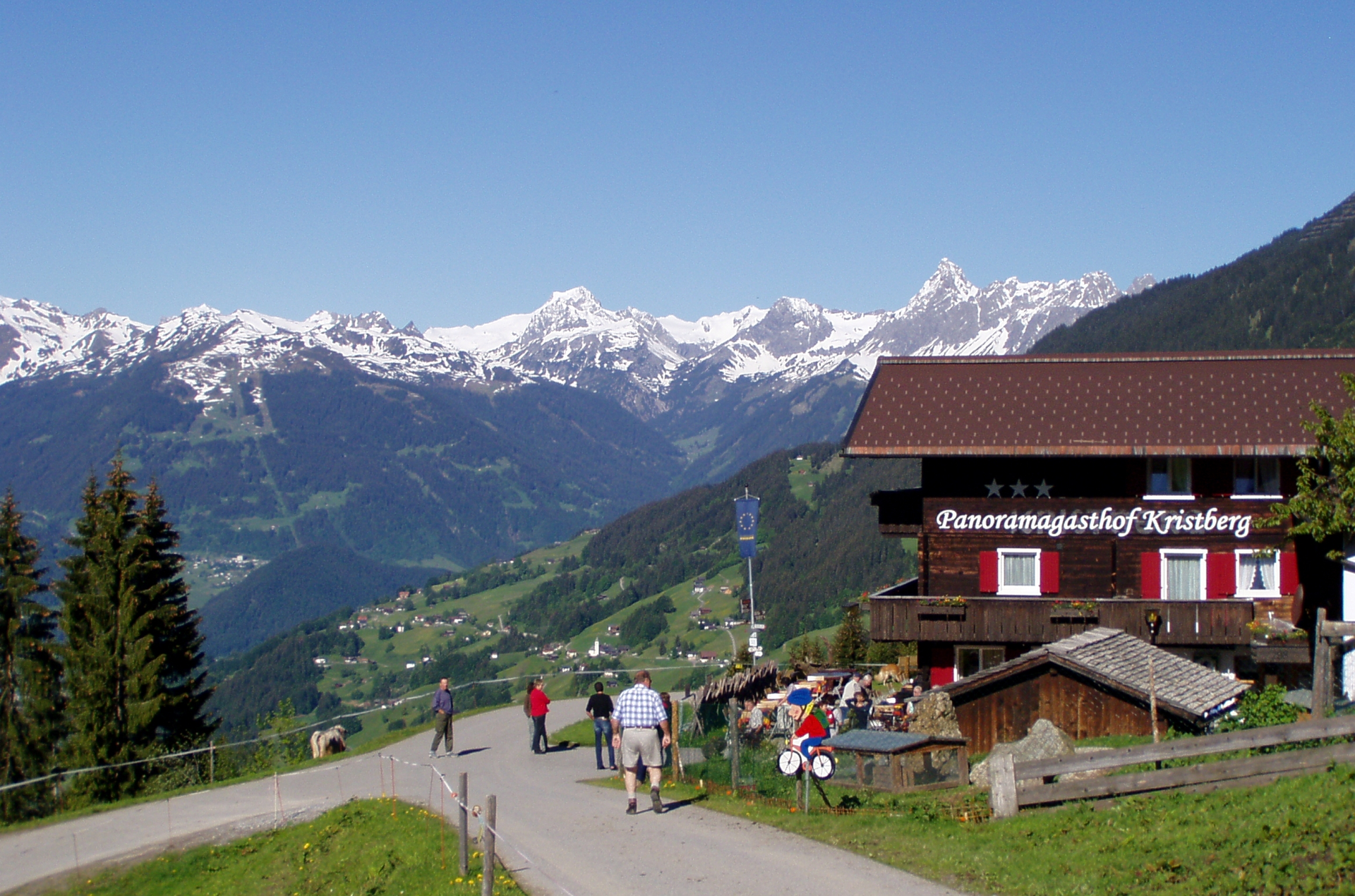 Vom Aktivpark in Schruns-Tschagguns geht es, am Schrunser Bahnhof vorbei, entlang der rauschenden Litz bis nach Silbertal. Dort angekommen, schwebst Du samt Mountainbike mit der Kristbergbahn auf den Genießerberg Kristberg auf 1.444 Meter Seehöhe. Hier wird Dir ein traumhaftes Panorama auf die umliegende Bergwelt geboten. Sportliche Fahrer können die 555 Höhenmeter auch auf der Straße bewältigen. Vom Kristberg geht es leicht ansteigend zu den Siebenbrünnele und weiter zum Wildried, welches das höchste Hochmoor in Europa ist. In diesem besonderen Naturkomplex findest Du immer noch stark gefährdete Pflanzen, welche in ihrer Schönheit und Einzigartigkeit kaum zu übertreffen sind. Danach geht es hinab ins Wasserstubental. Am Ende dieses Tales gibt es zwei Einkehrmöglichkeiten (Berggasthaus Hasahüsli und Alpengasthaus Fellimännle), bevor es wieder über eine Schotterstraße - vorbei am tosenden Wasserfall Teufelsbach - zurück ins Silbertal und weiter nach Schruns geht.