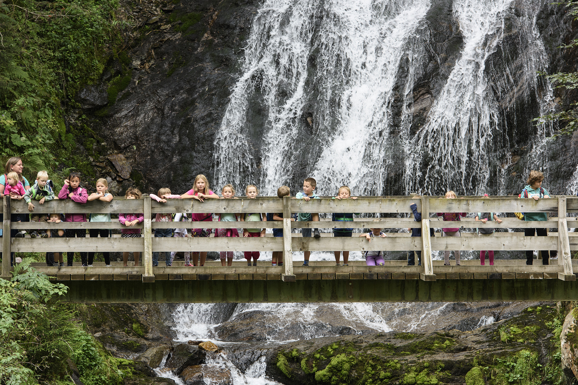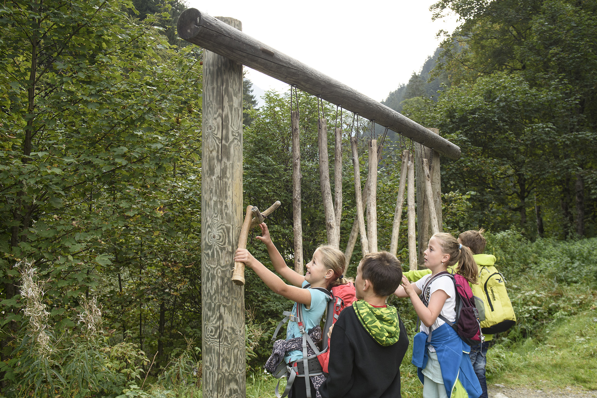 Die Almhütte Fellimännle erreichst Du kurz darauf und bietet für Kinder einen großen Spielplatz zum Verweilen an. Mit etwas Glück kannst Du frei herumlaufende Murmeltiere auf der Terrasse der Almhütte Fellimännle beobachten. Der Erlebnisweg führt noch ein kleines Stück weiter das Tal hinein. Kurz vor der Jausenstation Hasahüsli erreichst Du die letzte interaktive Station des Erlebnisweges. Zum Hasahüsli ist es nicht mehr weit, einfach der Straße bergwärts folgen. Zurück zum Ausgangspunkt gelangst Du über den gleichen Weg.