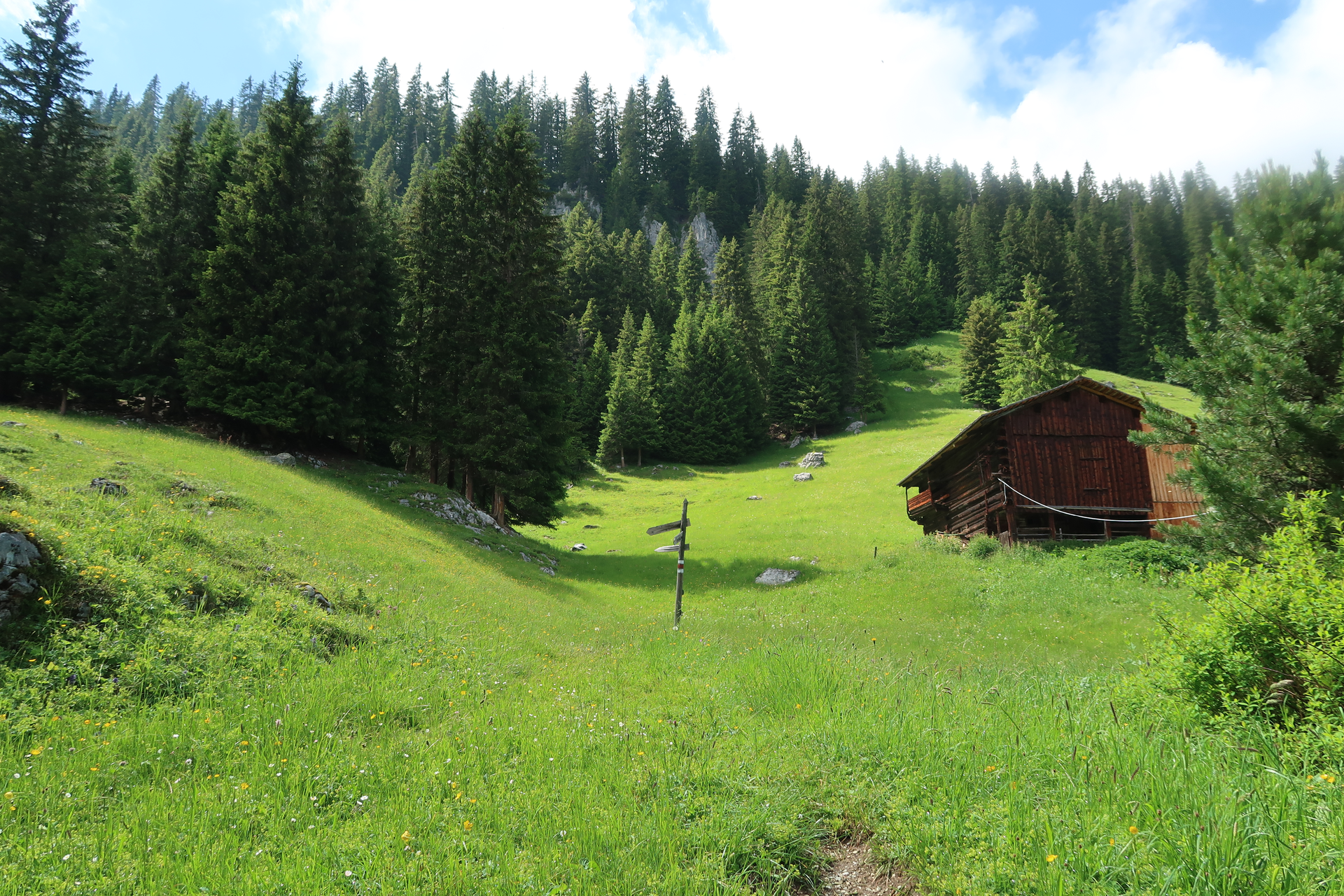 Auf der Rüti findest kannst Du gemütlich auf der kleinen Ziegenalpe verweilen und Käse kaufen.