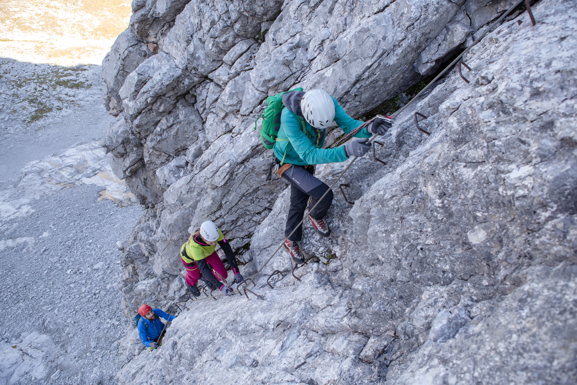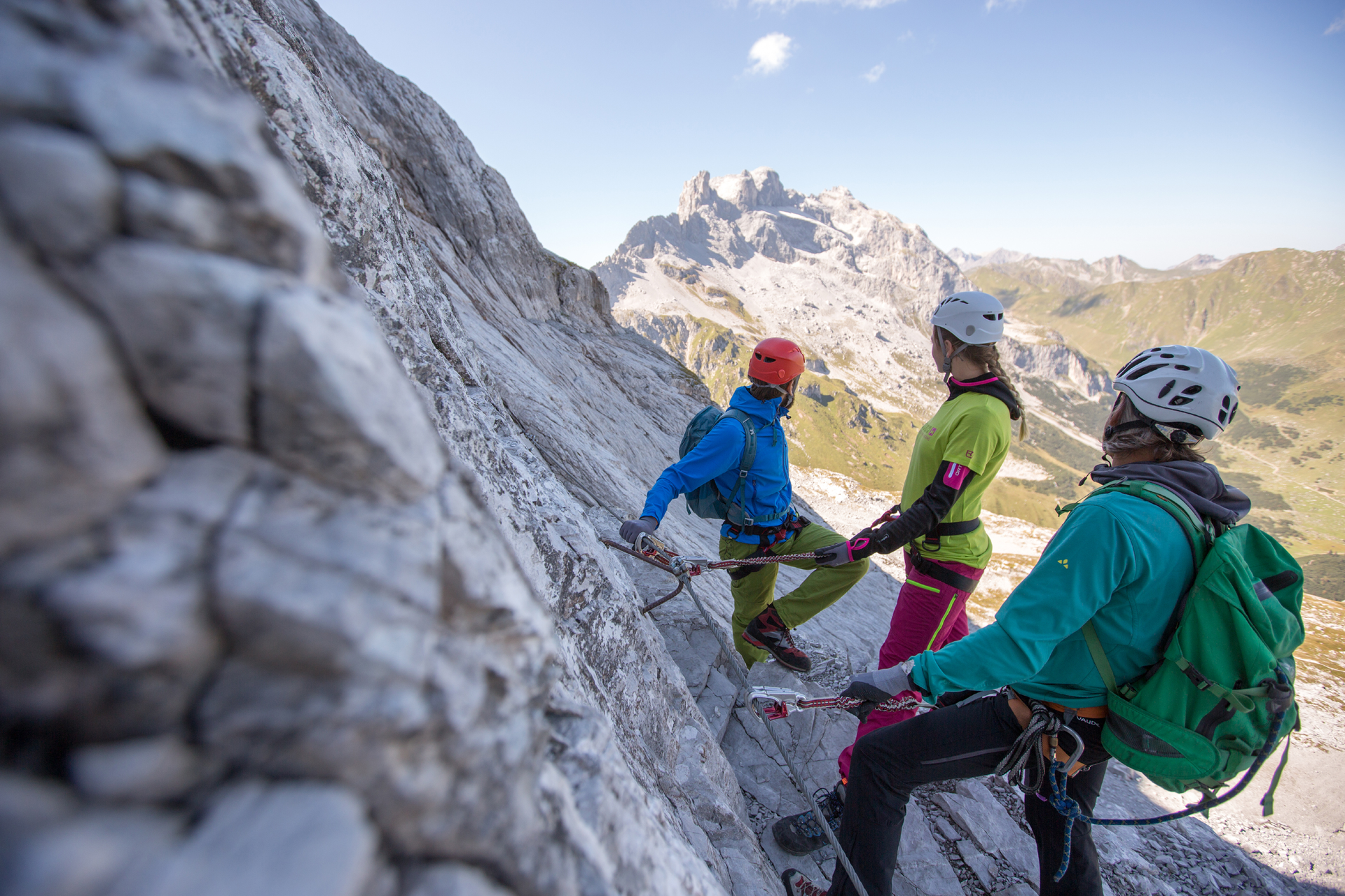 Zustieg:Ab der Lindauer Hütte dem Weg Richtung Sulzfluh-Rachen und Klettersteig (beschildert) bis auf das große Plateau „Auf den Bänken“ folgen. Dort zweigt auf ca. 2.050 Metern Höhe links ein Pfad ab, der Dich zum Einstieg des Klettersteigs führt.