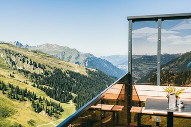 Von der Alpe Nova wandern wir zur Weinstube Vinnova, wo uns Sebastian freundlich begrüßt und auf eine willkommene Abkühlung einlädt. Wir sind ganz begeistert von der Vinnova, dem schicken Ambiente und der tollen Aussichtsterrasse. Nach einer Stärkung in der Nova Stuba (die gleich nebenan liegt), fahren wir mit der Versettla Bahn wieder hinunter ins Tal. Ein toller – und interessanter – Tag geht zu Ende. Der Besuch in der Alpe Nova hat uns gezeigt, wie viel Arbeit eigentlich auf einer Alpe geleistet wird und wie wichtig Alpen von die Bewirtschaftung der Berge sind.