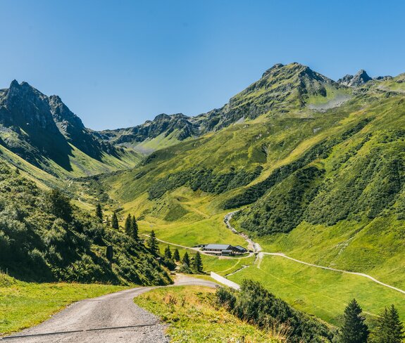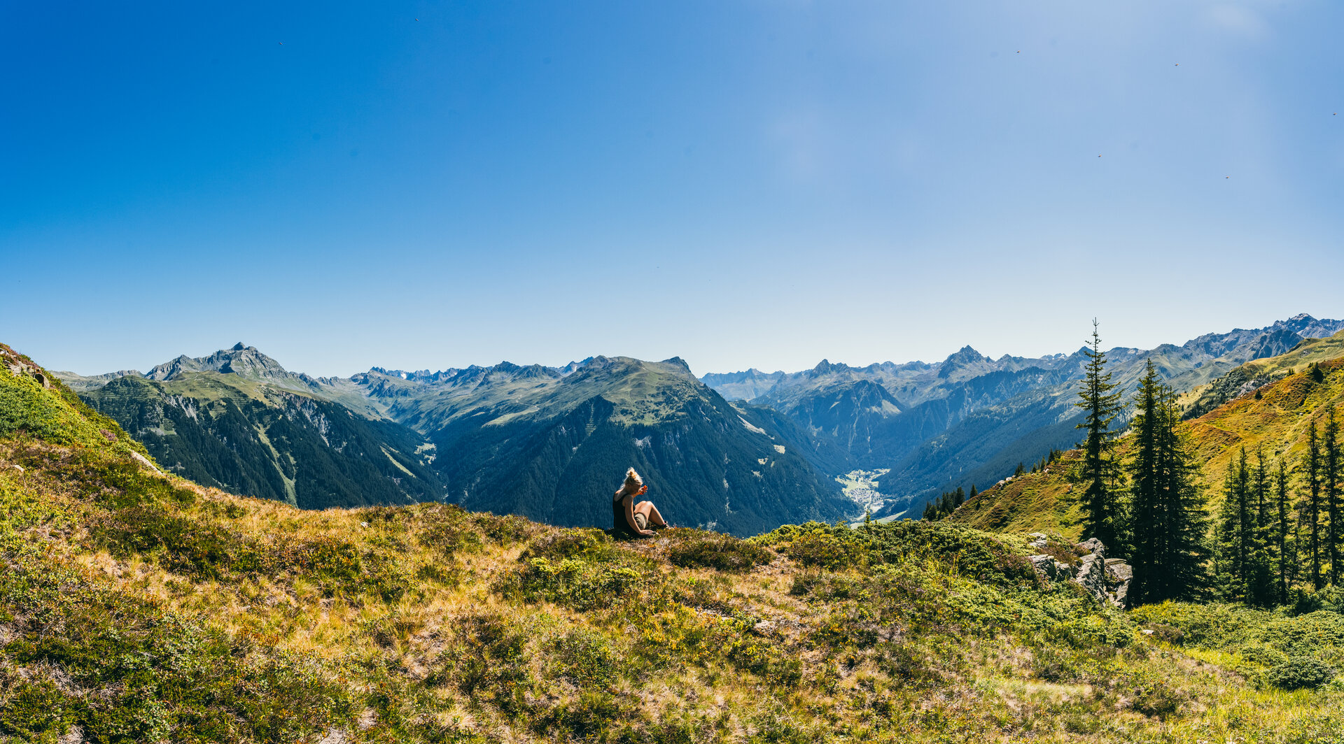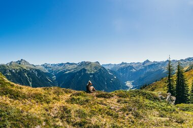 Mit der Garfrescha Bahn geht es für hinauf bis zur Bergstation. Auf dem Weg zur Alpe Nova entscheiden wir uns für einen kleinen Umweg über den Gantakopf, um eine schöne Aussicht ins Tal zu haben. Und das lohnt sich!