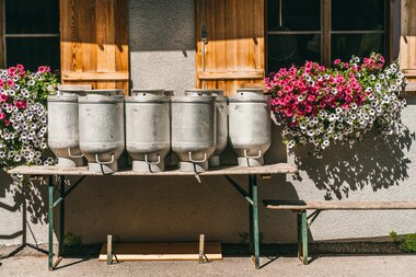 Auf der Alpe Nova treffen wir uns mit Andrea der Bei-Sennerin. Sie und ihre Familie betreiben die Alpe im Sommer von Mitte Juni bis Anfang September. Ihr Mann arbeitet als Senner auf der Alpe und auch der Sohn hilft schon bereits kräftig als Junghirte mit. Der Tag startet um 4 Uhr morgens und endet erst spät am Abend, denn auf der Alpe gibt es einiges zu tun. Die Alpe Nova ist eine Genossenschaft und hat 70 Kühe und 8 Schweine von 25 verschiedenen Bauern. „Pro Sommer werden auf der Alpe Nova etwa 80.000 Liter Milch verarbeitet“, erzählt uns Andrea. Daraus werden zum Beispiel Bergkäse, Butter und Sura Kees (der typische Käse aus dem Montafon) gemacht. Wir sind erstaunt wie vielseitig Sura Kees ist. Der Geschmack erinnert uns an milden Frischkäse. Aber Andrea erzählt uns, dass der Käse immer saurer und kräftiger wird, je länger man ihn stehen lässt. Und wie macht man Sura Kees?
