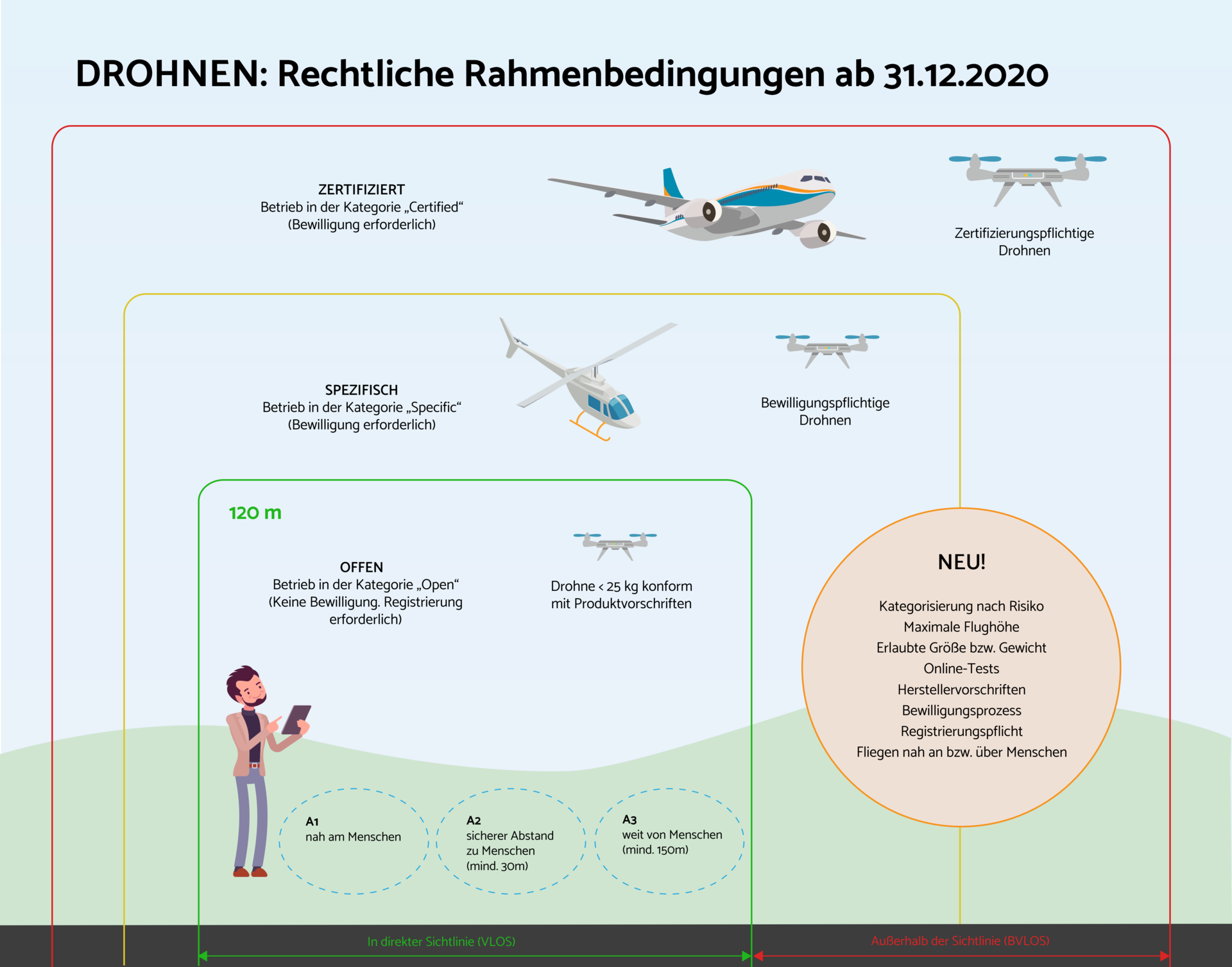 Seit 2021 gelten auch in Österreich neue, europaweit einheitliche Regeln für die Drohnennutzung. Grundsätzlich gilt: