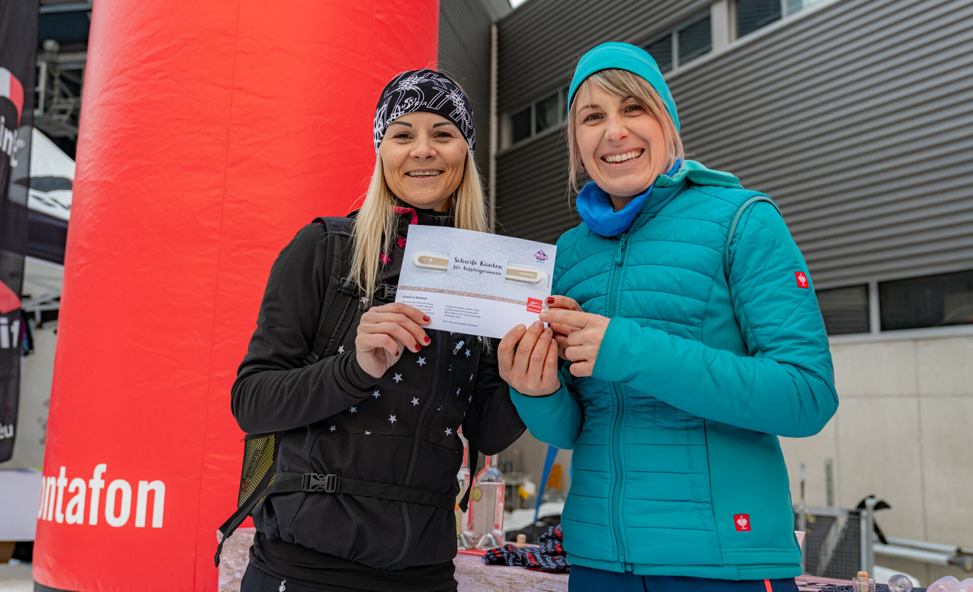 Gegen Ende der Strecke durften wir „Gaudi Ladies“ von einem ganz besonderen Service profitieren: Ein Schlepplift zog uns die letzten Höhemeter bequem in Richtung Ziel. Beim Abfellen, aber auch auf der Strecke wurden wir stets von hilfsbereiten Mitarbeitern, in pinken Westen versteht sich, unterstützt und angefeuert. Nach kurzem Kräftesammeln während der Liftfahrt, marschierten wir die letzten Meter gemeinsam ins Ziel, wo jede Aufsteigerin bereits unter Jubelrufen erwartet wurde. Was für ein Gefühl! Vom Zielgelände ging’s für alle Aufsteigerinnen direkt zur Hütten Gaudi ins Schafberg Hüsli, wo der Abend bei Live Musik und ausgelassener Stimmung natürlich gebührend gefeiert wurde.