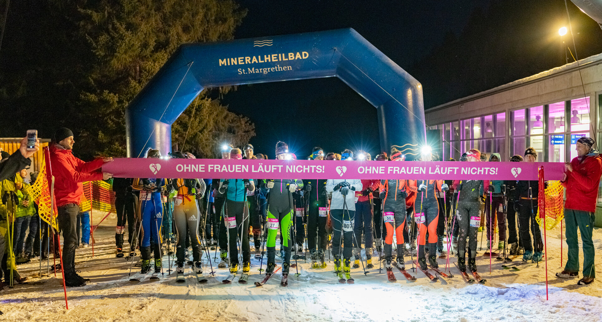 Nun hieß es alle Mann… äh, alle Frauen an den Start! Nach einer gemeinsamen Aufwärmrunde fiel um 18:00 Uhr der Startschuss: 3, 2, 1 – los. Zuerst ging’s für die „Vollgas Ladies“ wortwörtlich mit Vollgas auf die Strecke, bevor wir – die „Gaudi Ladies“ - gefolgt von den ambitionierten „Schneeschuh Ladies“ starteten.