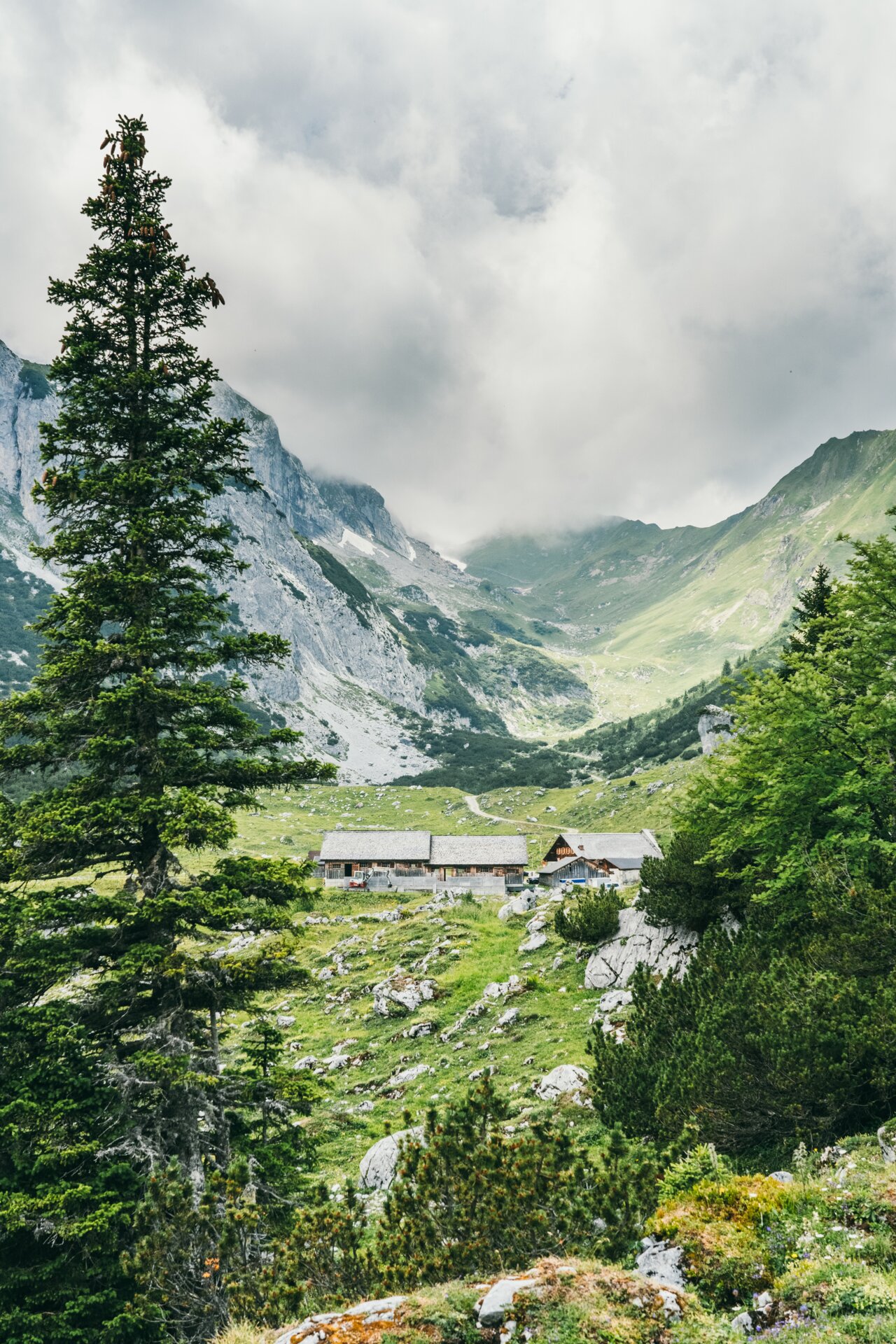 Auf dem Weg passiert man immer wieder mal an Skulpturen vorbei. Insgesamt gibt es auf dem Weg 13 verschiedene Skulpturen von dem Montafoner Künstler Roland Haas, die sich alle mit der Montafoner Alp- und Maisäßkultur beschäftigen. Die Schilder an den einzelnen Skulpturen sind im Montafoner Dialekt geschrieben, weshalb es sich empfiehlt einen QR Code Scanner auf dem Handy zu haben, um sich die Übersetzungen anschauen zu können. Nach gut einer Stunde hat man sämtliche kleine Steigungen hinter sich und der Weg geht von nun an nur noch leicht bergab und den Blick immer auf die Drei Türme gerichtet, die am Ende des Gauertals emporragen.