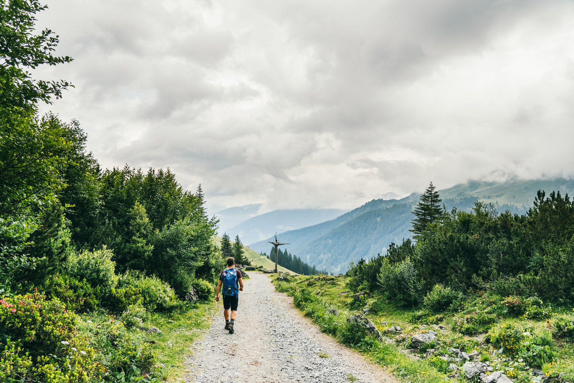 Als Parkmöglichkeit eignet sich der Parkplatz direkt an der Talstation der Golmerbahn sehr gut. Um zum Startpunkt der Wanderung zu gelangen, nimmt man einfach die Golmerbahn, die einem dann zum Startpunkt der Wanderung an die Bergstation der Golmerbahn bringt. Von dort aus folgt man den Wanderschildern in Richtung Lindauer Hütte. Los ging es bei uns am späten Vormittag, da das Wetter im Laufe des Tages immer besser werden sollte. Von der Bergstation der Golmerbahn geht es am Hang entlang ins Gauertal hinein. Am Anfang geht der Weg immer mal wieder bergauf, dann aber auch gleich wieder bergab. Jedoch alles für wirklich jedermann gut machbar.