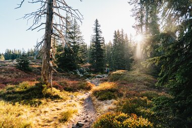 Dann geht es für uns auch wieder zurück zum Ausgangspunkt der Wanderung. Die herbstlich warmen Temperaturen machen das Wandern gleich nochmal angenehmer.