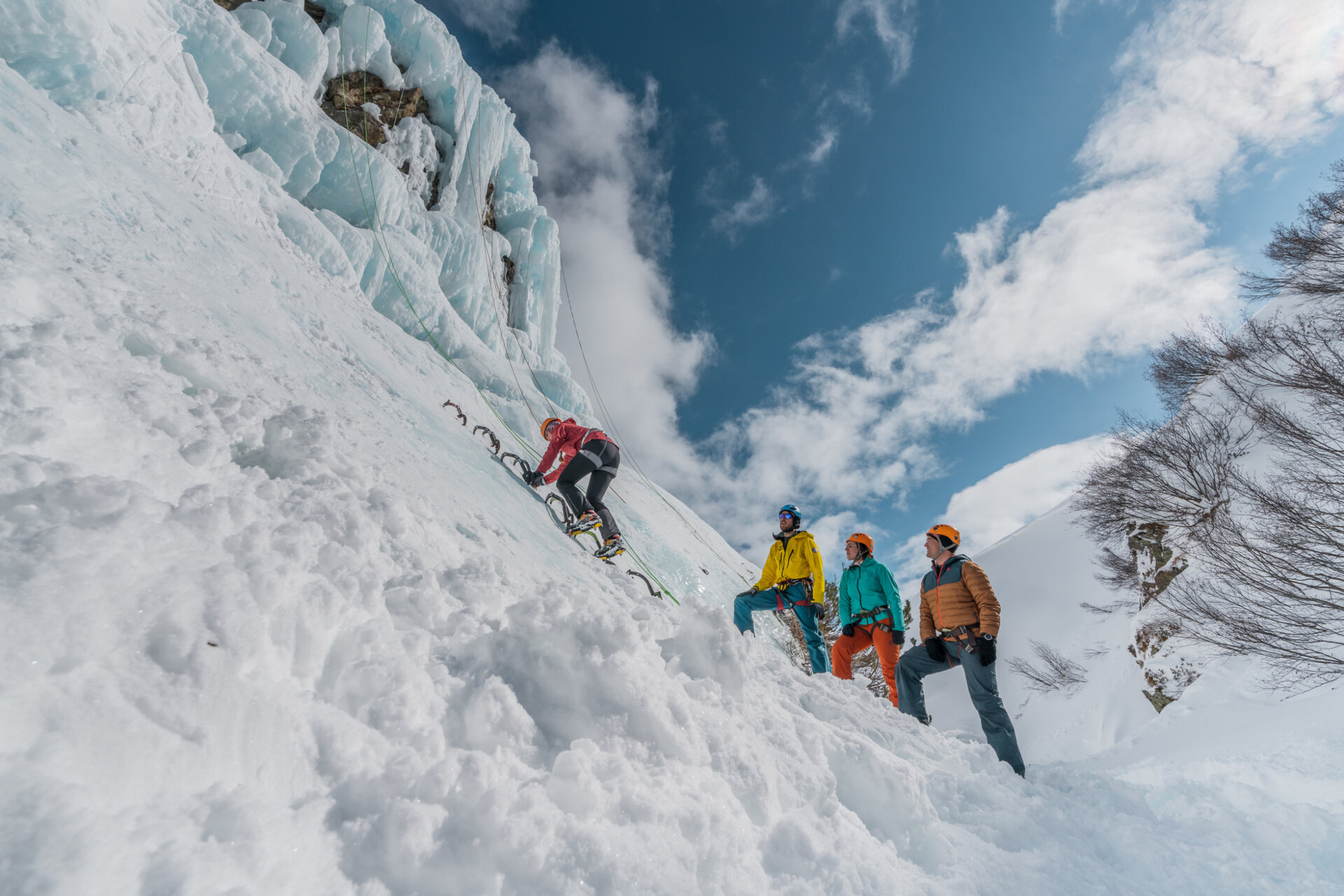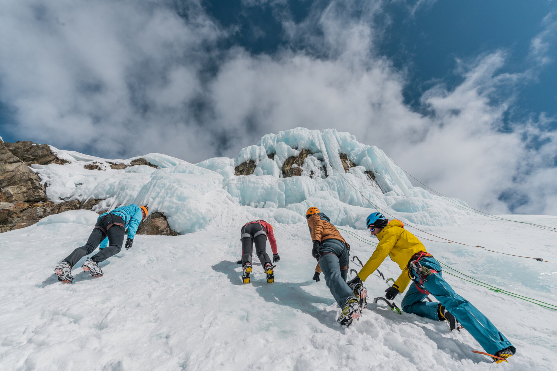 Die verschiedenen Techniken des Kletterns sowie die richtige Verwendung des Steigeisens und des Eispickels (ich hatte ja keine Ahnung, dass es so viele unterschiedliche Möglichkeiten gibt!) wurden von Lukas ausführlich erklärt und auch genau vorgeführt. Damit wir das richtige Gespür für das Eis sowie auch Vertrauen in das Material bekommen, starteten wir zuerst mit einer Übungsrunde, bei der Lukas uns alle genau im Blick hatte. Die richtigen Tipps und Tricks kamen dabei natürlich nicht zu kurz.