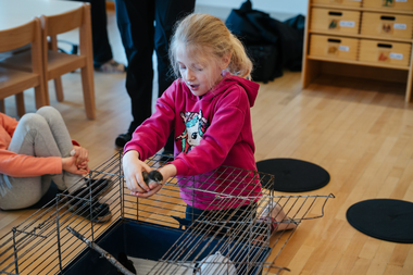 Rosa, Valentina und Kilian kümmerten sich um frisches Wasser und Futter, während Noel, Luis, Laurin und Raphael den Käfig säuberten. „Die machen ganz schön viel Dreck“, meinte Raphael. Die Kinder waren äußerst vorsichtig, als sie die kleinen Küken zurück in den Käfig setzten. Helena, Mia und Gebhard ließen sich Zeit, um sicherzustellen, dass sie die Küken behutsam hielten. Als Pius das Küken hielt und zurück in den Käfig brachte, rief er: „Das kitzelt auf der Hand“. Tiada lobte die Hennatschätter Gruppe für ihre Achtsamkeit und Fürsorge im Umgang mit den Küken.