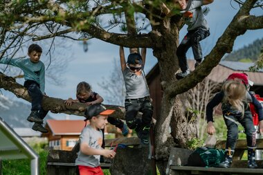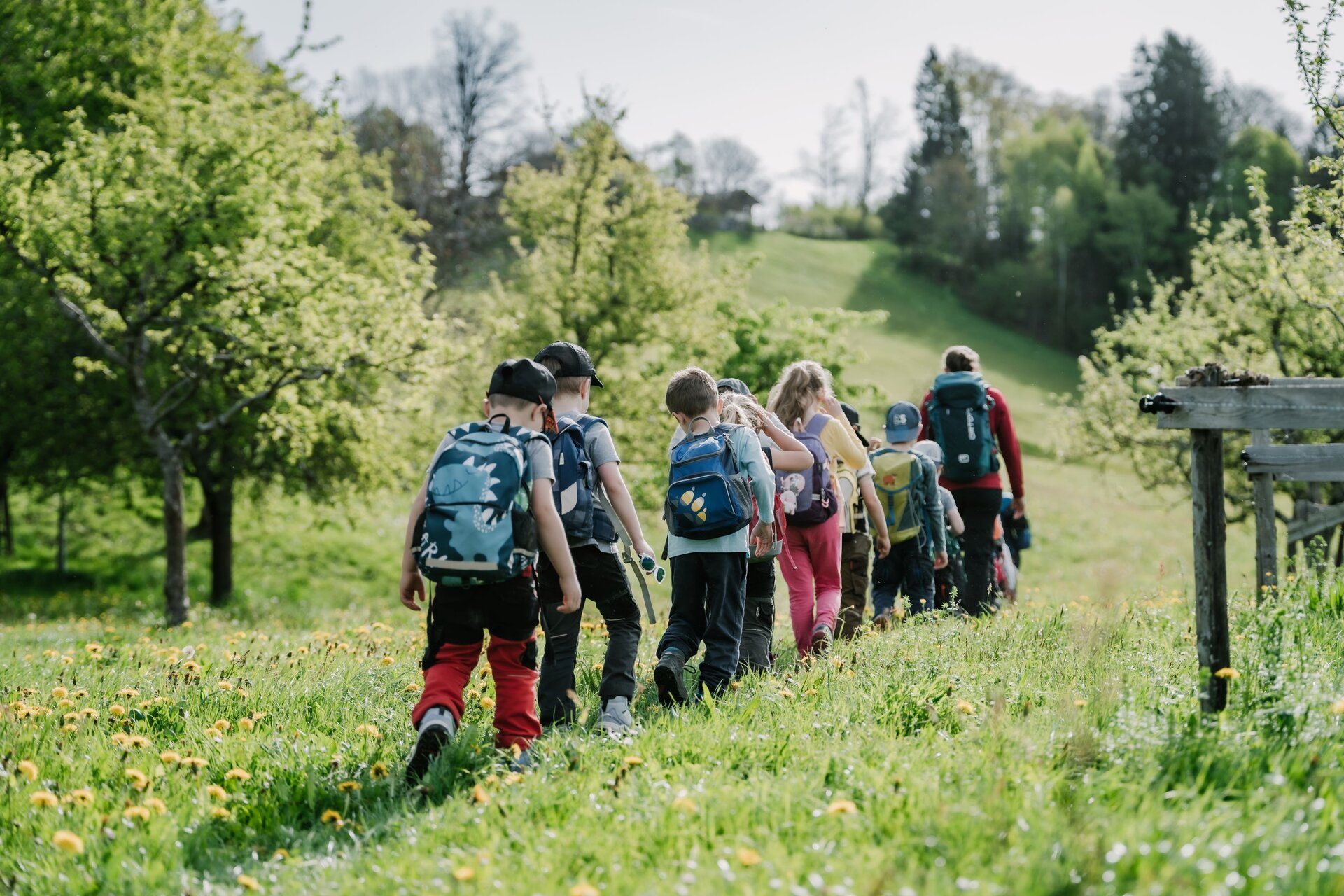 Die Hennatschätter Gruppe des Kindergartens Bartholomäberg machte sich voller Vorfreude auf den Weg in den Wald. Der Wald, der so nah am Kindergarten liegt, ist für die Kinder immer ein Ort voller Abenteuer und Geheimnisse. Schnell waren die Rucksäcke umgeschnallt und schon begann die Wanderung auf interessanten Wiesenwegen, vorbei an Jessica, dem Pferd, das auf der Weide graste. Unterwegs gab es eine kurze Trinkpause an einem alten Baum, der für die Kinder als natürliche Klettermöglichkeit diente.