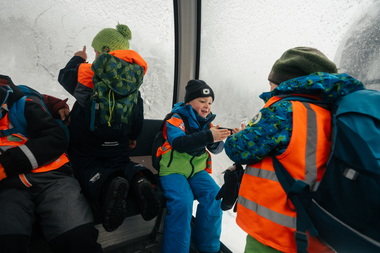 Auf den Hochjoch ging’s mit der Zamang Bahn. Die Kinder lachten und jubelten, während die Bergbahn langsam den steilen Hang hinauffuhr. Es war ein aufregendes Abenteuer, das die kleinen Passagiere voller Freude genießen konnten.