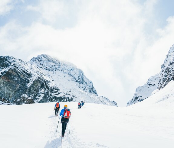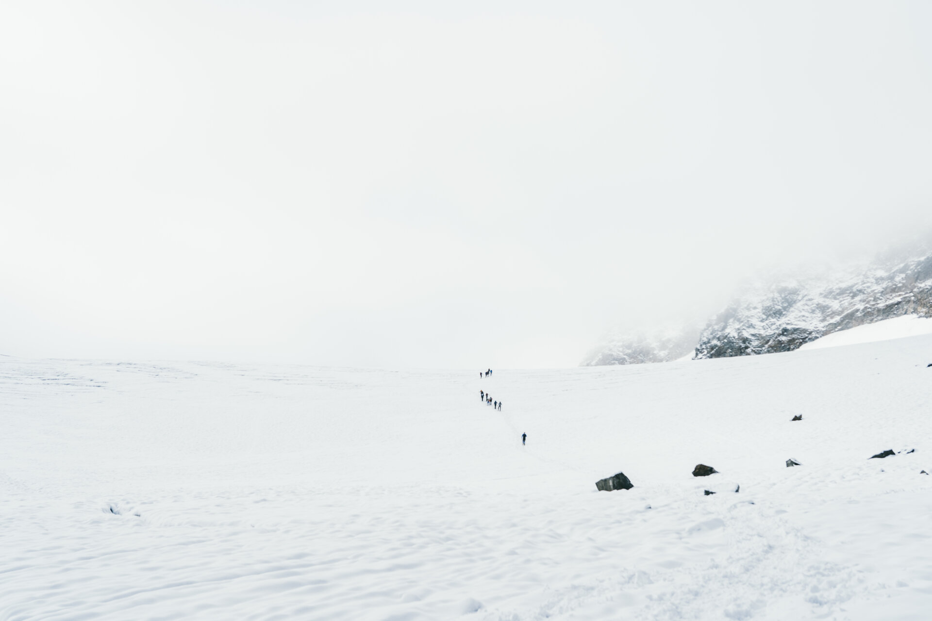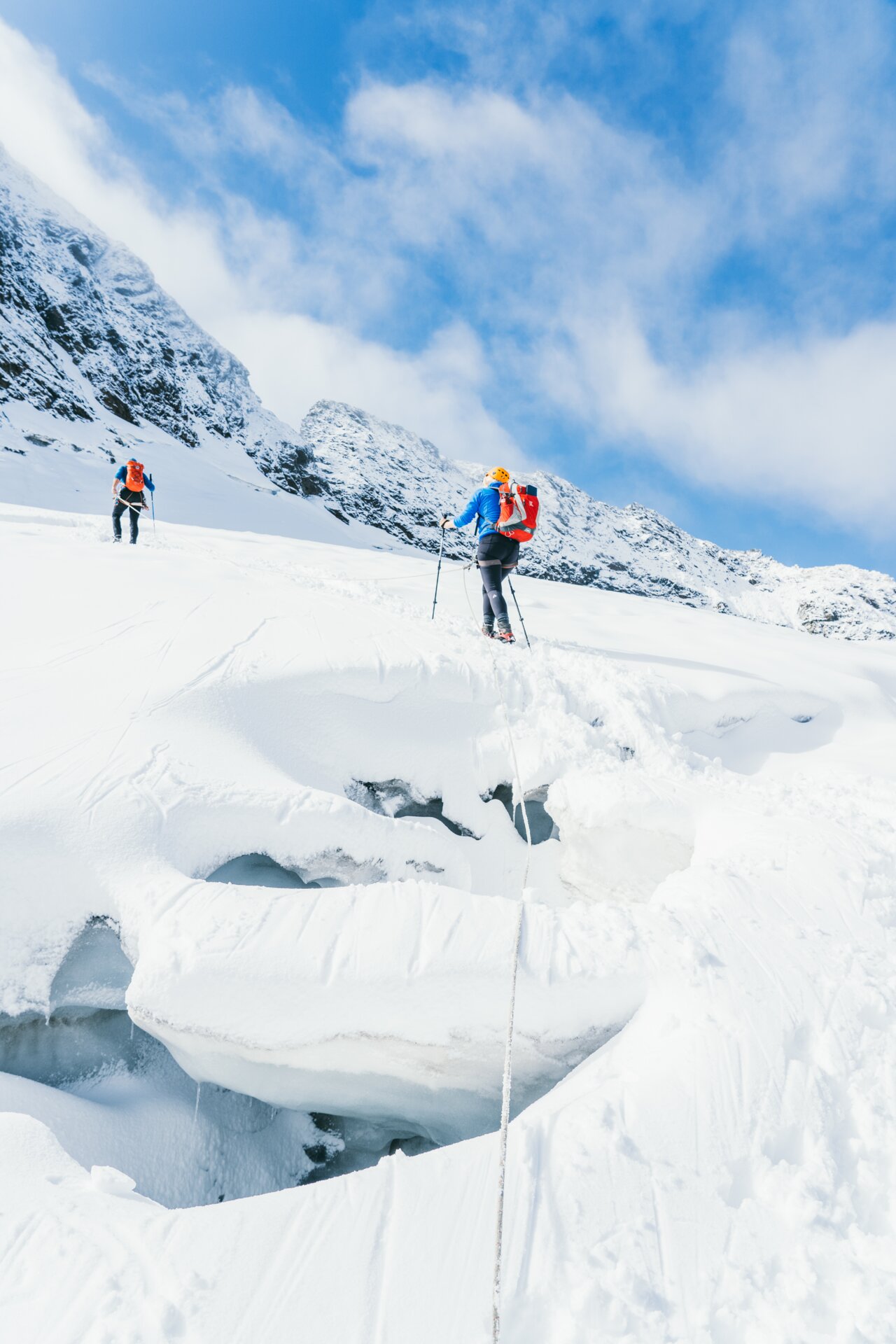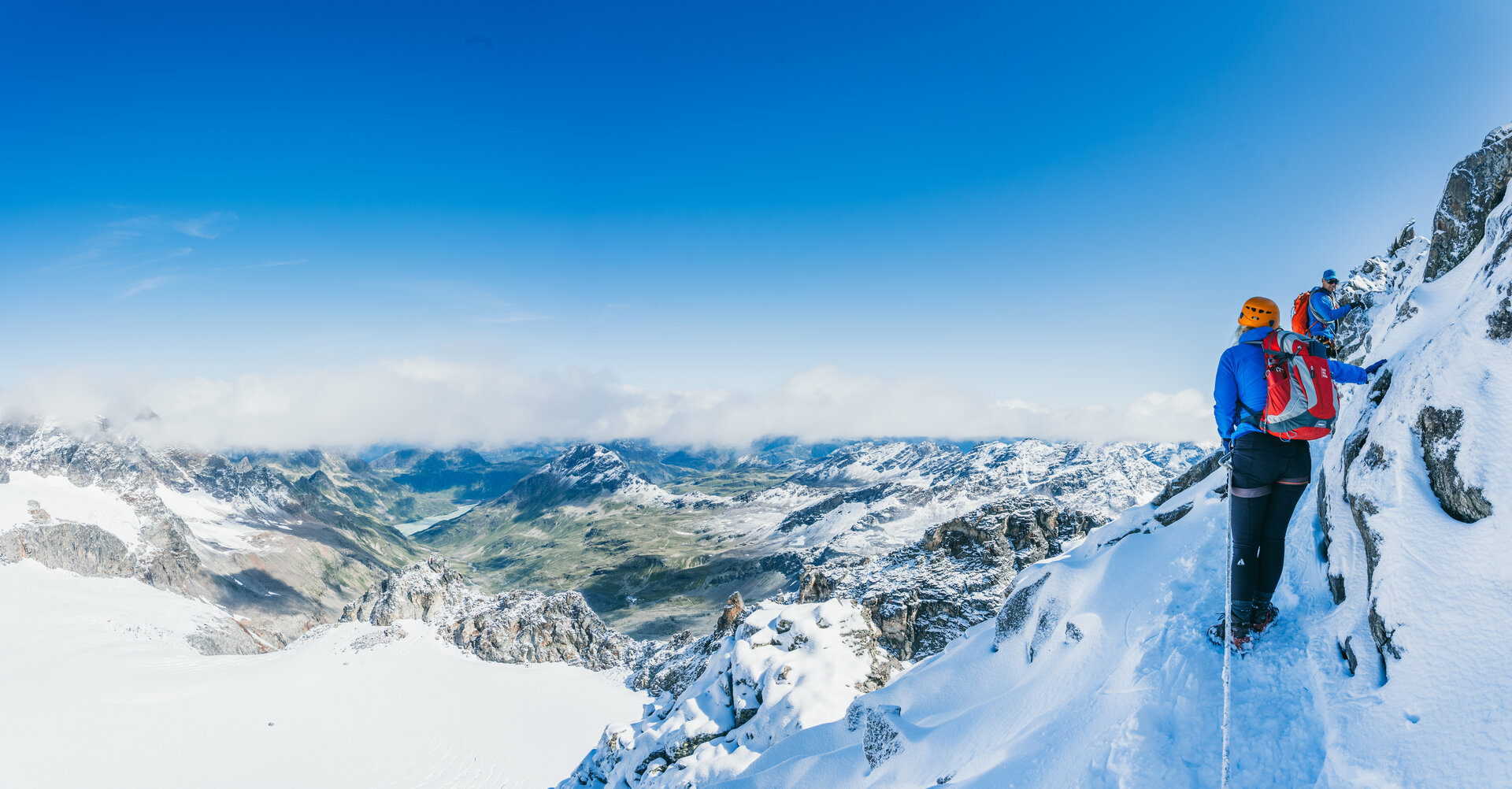 Morgens holt uns Hanno, unser Bergführer für die Tour, ab. Jeder aus unserer Gruppe hat schon viele Wandertouren hinter sich, aber jedoch keine Bergsteigererfahrung. Gespannt lauschen wir Hannos Einweisung und löchern ihn mit Fragen. Wie lange machst du das schon? Was ist dein höchster Berg gewesen? Wie viele Touren machst du pro Saison? Hanno beantwortet uns alle Fragen die wir haben und dann geht es los. Der Anfang der Tour ist gemütlich und die Wolken verziehen sich recht schnell und geben den Blick auf die Berge frei. Über Nacht hat es geschneit. Die Gipfel rundherum sind alle angezuckert und sehen wunderbar aus. Wir kommen an grünen Gletscherseen und kleinen Wasserfällen vorbei. Kurz vor dem Gletscher seilen wir uns an und ziehen die Helme an. „Wir gehen jetzt erst am langen Seil, dann über den Gletscher am kurzen Seil und dann hoch zum Piz Buin wieder am langen Seil“, erklärt uns Hanno. Wir ziehen uns die Steigeisen an und dann geht es über Gletscherspalten, Schnee und Eis hinauf zur Buinlücke. Hanno erzählt uns nicht nur Geschichten über das Bergsteigen, sondern er berichtet auch über den dramatischen Rückgang der Gletscher: „Vor ein paar Jahrzehnten gingen die beiden Gletscher noch bis unterhalb der Wiesbadener Hütte – jetzt haben sie sich schon sehr weit zurückgezogen, die letzten beiden Jahre war es besonders schlimm. Die Eisschicht ist teilweise nur noch wenige Meter dick. In ein paar Jahren wird es diese Gletscher nicht mehr geben, denn eine Besserung ist nicht in Sicht“. Schon heftig, was der weltweite Temperaturanstieg mit den Gletschern macht…