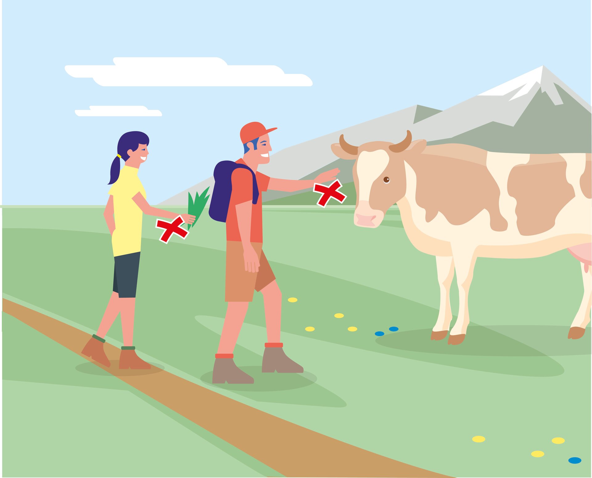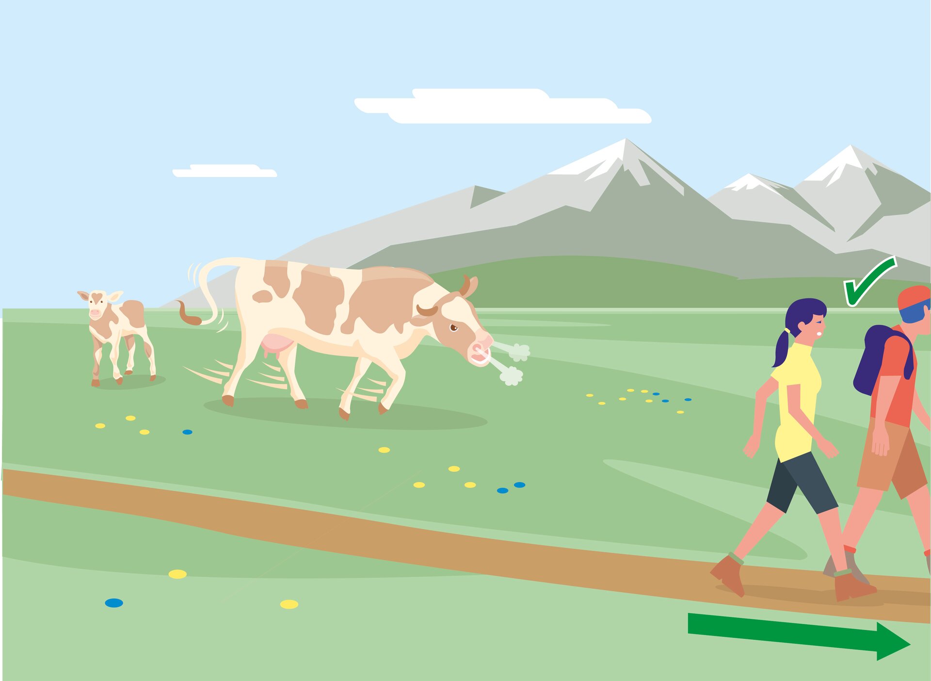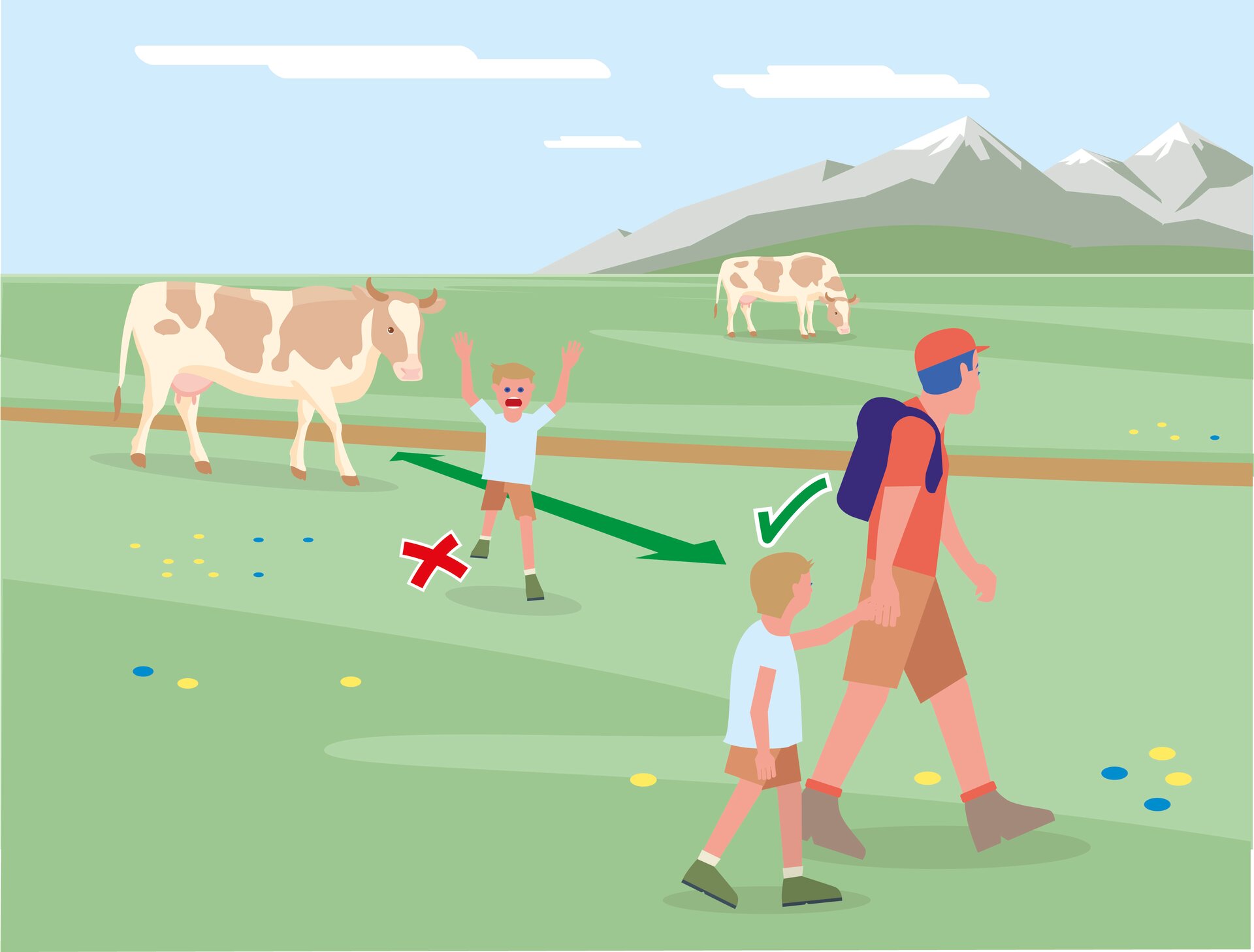 • 1. Kontakt zum Weidevieh vermeiden, Tiere nicht füttern, sicheren Abstand halten!