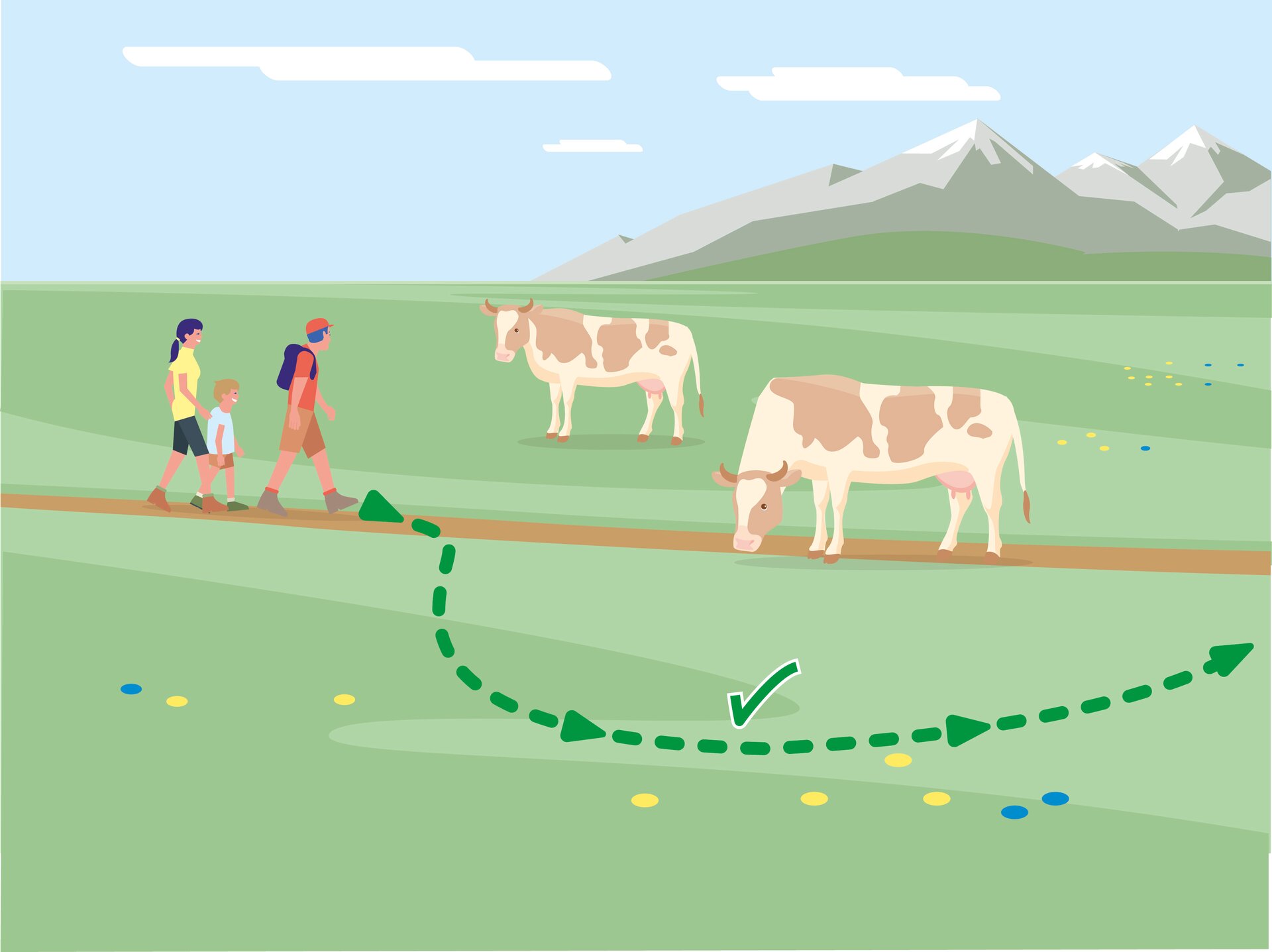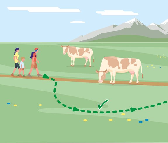 • 6. Wenn Weidevieh den Weg versperrt, mit möglichst großem Abstand umgehen!