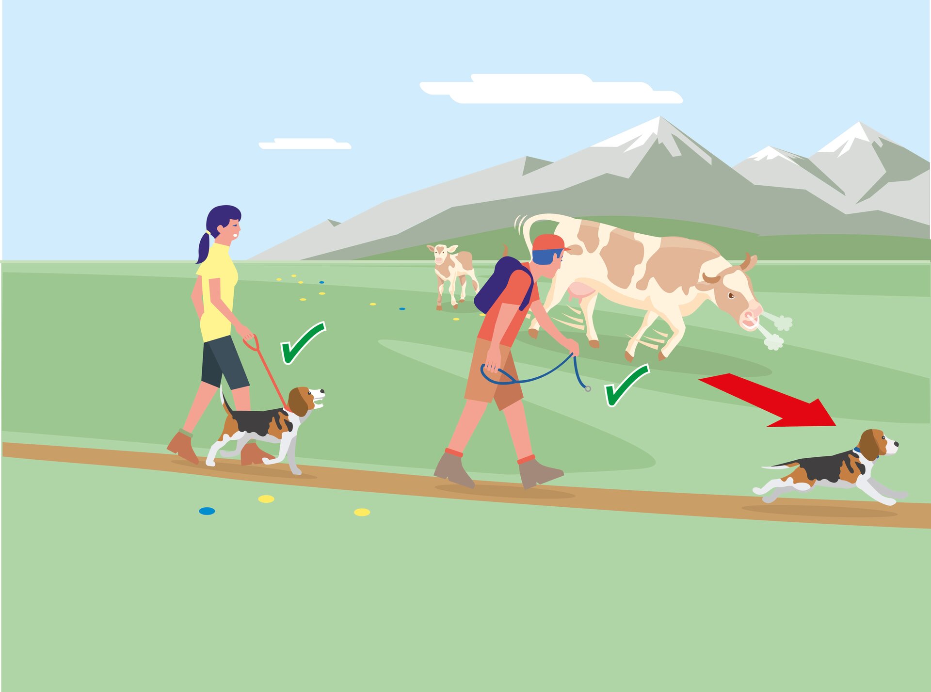 • 4. Hunde immer unter Kontrolle halten und an der kurzen Leine führen. Ist ein Angriff durch ein Weidetier abzusehen: Sofort ableinen!