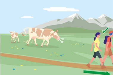 • 7. Bei Herannahen von Weidevieh: Ruhig bleiben, nicht den Rücken zukehren, den Tieren ausweichen!