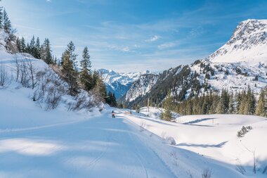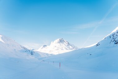 An der Bielerhöhe angekommen, heißt es eigentlich nur Skier anlegen und auf geht es zum Treffpunkt der Skisafari. Man sollte sich auf der Bielerhöhe auch nicht allzu lange von dem schönen Panorama aufhalten lassen, da sich der Weg zum Treffpunkt etwas zieht und man ja unter keinen Umständen den Pistenbully verpassen möchte. Um zum Treffpunkt der Skisafari zu gelangen, fährt man erstmal zur Talstation des Schlepplifts und dann folgt man dem Weg, der weiter talauswärts führt. Der Weg zum Treffpunkt dauert gute 20 Minuten, da man auch einige kurze Anstiege zu bewältigen hat. Snowboardfahrer/-innen müssen an diesen Stellen abschnallen und ein kurzes Stück zu Fuß zurücklegen.