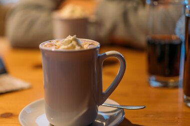 Die Lindauer Hütte ist ein tolles und lohnendes Ziel nach einer wunderbaren Winterwanderung. Die gemütliche Stube lädt zum Beisammensitzen ein und wir stärken uns mit einem Bergsteigeressen und einer heißen Schokolade (natürlich mit Sahne). Draußen pfeift der Wind und wir sitzen trocken und warm in der Hütte – herrlich, so lässt es sich aushalten.