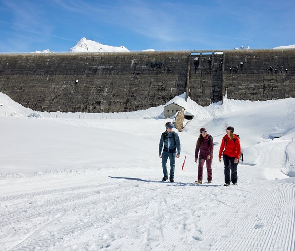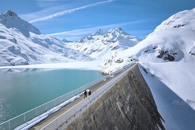 Dazu zählt auf jeden Fall der Staumauerrundweg. Er führt über die Staumauer des Silvrettasees, dann rechts hinunter durchs Silvrettadorf und wieder hinauf zum Ausgangspunkt am Beginn der Staumauer. Dabei werden die Winterwanderer von einem Gebirgspanorama begleitet, wie sie es tatsächlich nicht alle Tage sehen.