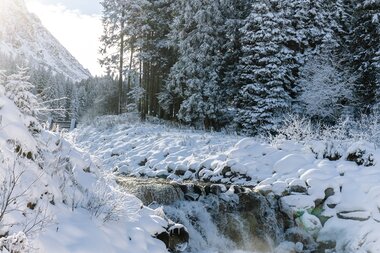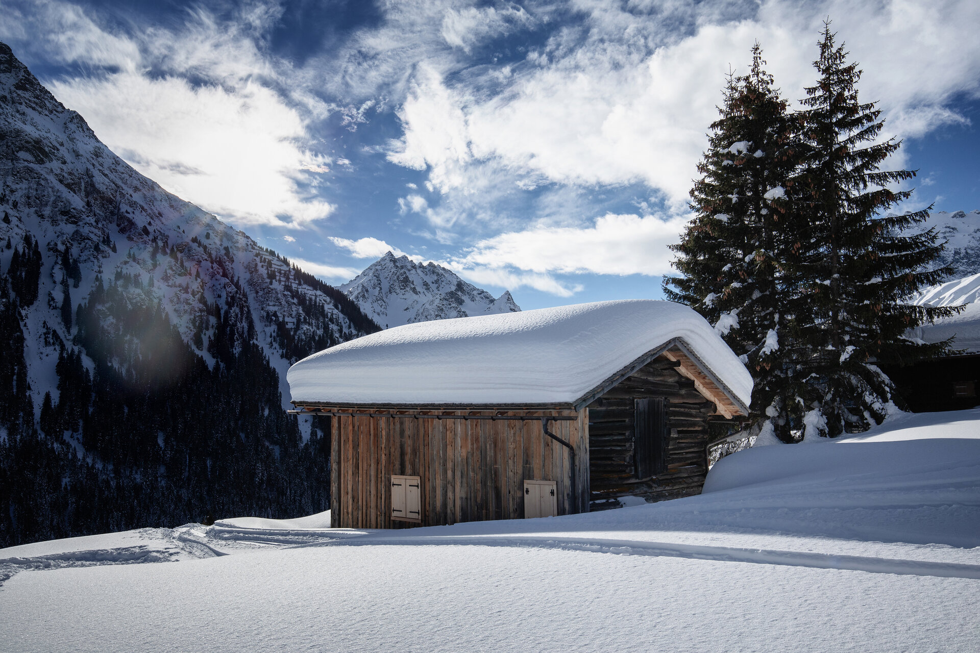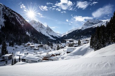 Eine schneesichere und aussichtsreiche Tour ist die Winterwanderung zum Röbimaisäß in Gargellen, dem höchstgelegenen Dorf des Montafon auf 1.423 Meter. Schnee ist hier oben quasi garantiert, denn schon bei der Fahrt von St. Gallenkirch durch das enge Gargellental säumen gewaltige Schneewände mit mehr als einem Meter Höhe die Straßen. Kein Wunder: Im Ortsgebiet von Gargellen fällt im Schnitt pro Jahr mehr Niederschlag als im übrigen Montafon.