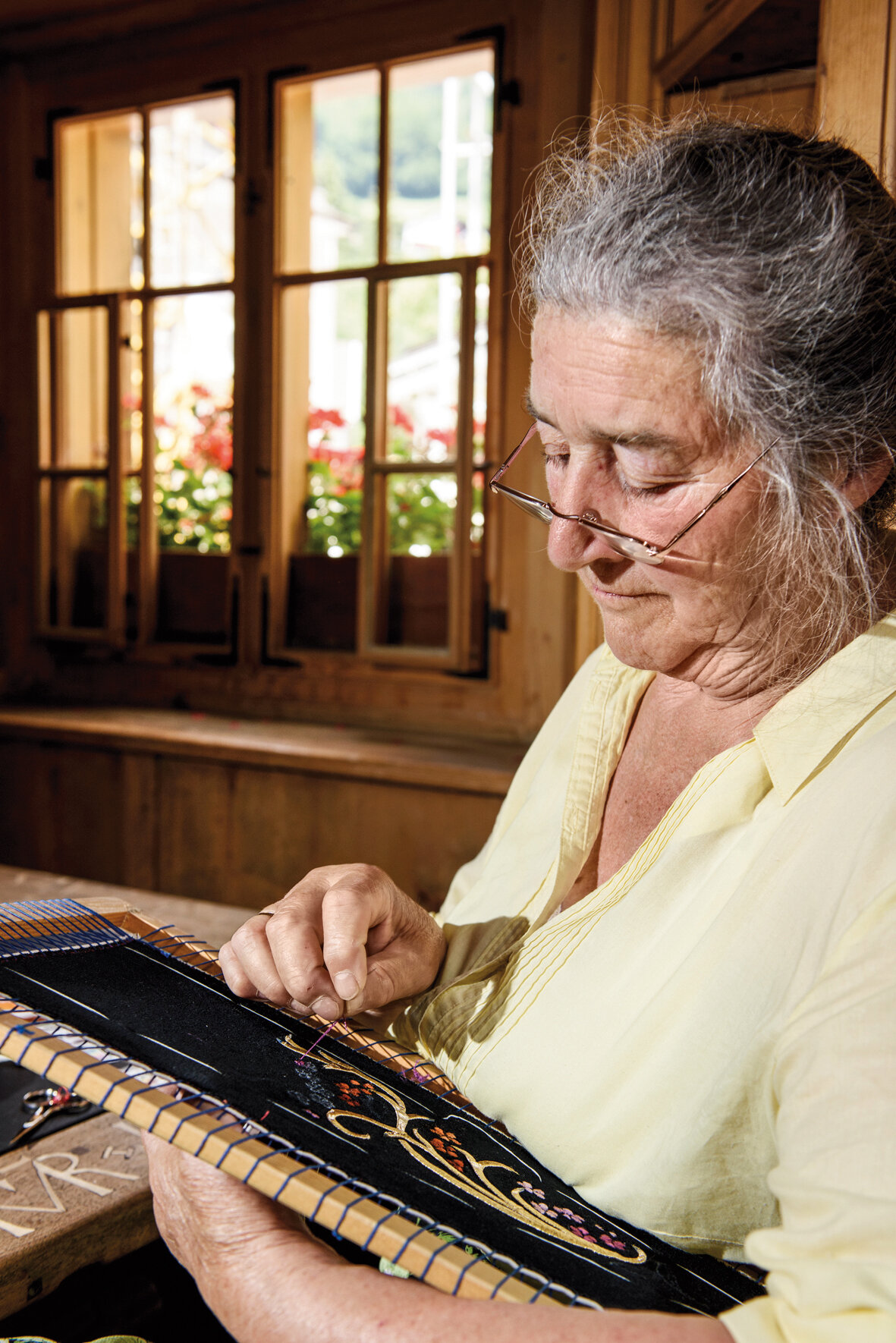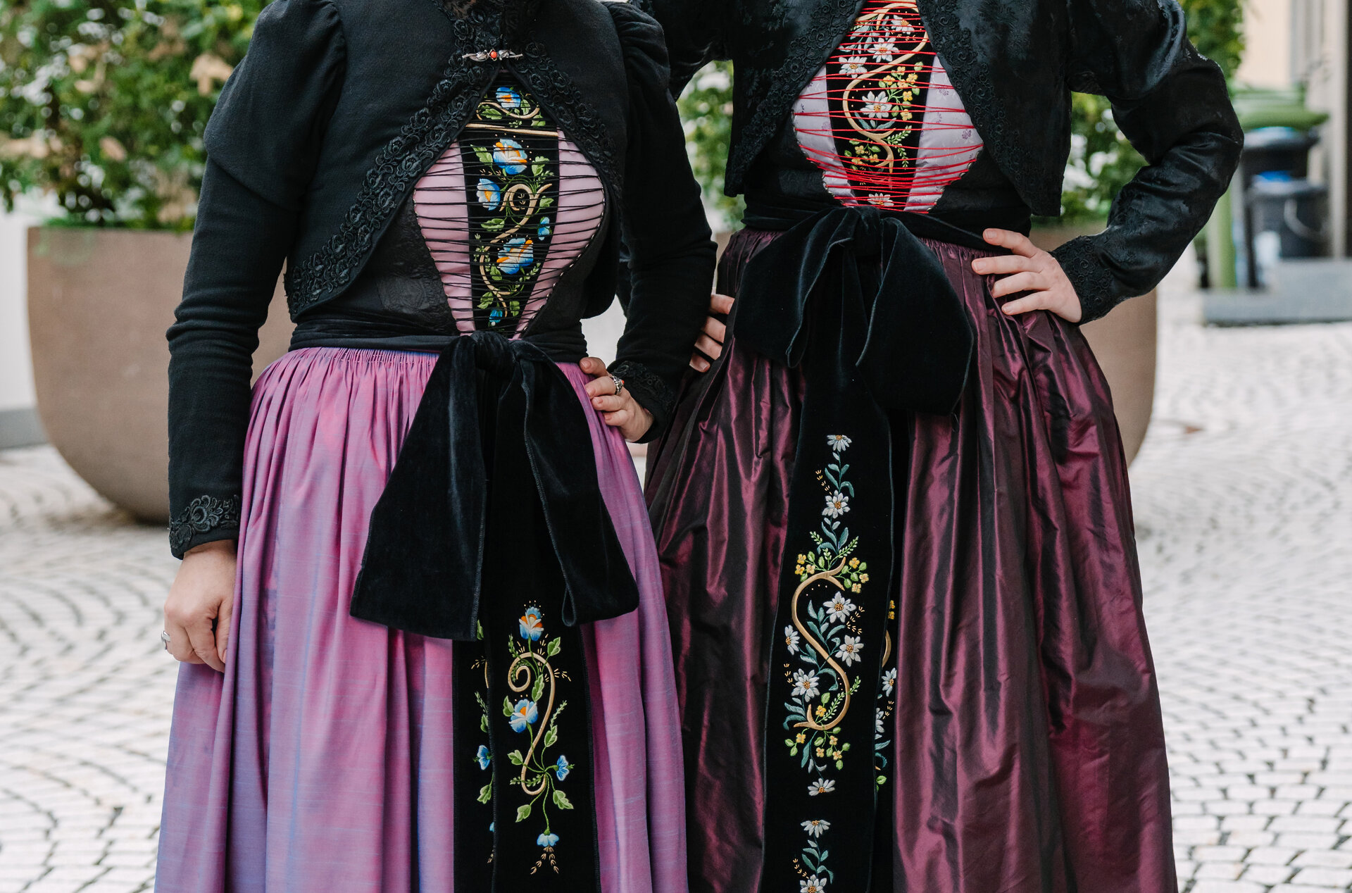 „Besonders die handgefertigten Verzierungen machen sie so kostbar“, erklärt Ulrike Bitschnau vom Landestrachtenverband Vorarlberg. Heimische Blütenmotive und Goldschlingen schmücken Schürzenbänder, Kragen, Ärmel der Glöggletschopa, Zopfbänder und das Brusttuch – allein diese Stickereien erfordern rund 500 Stunden Arbeit.