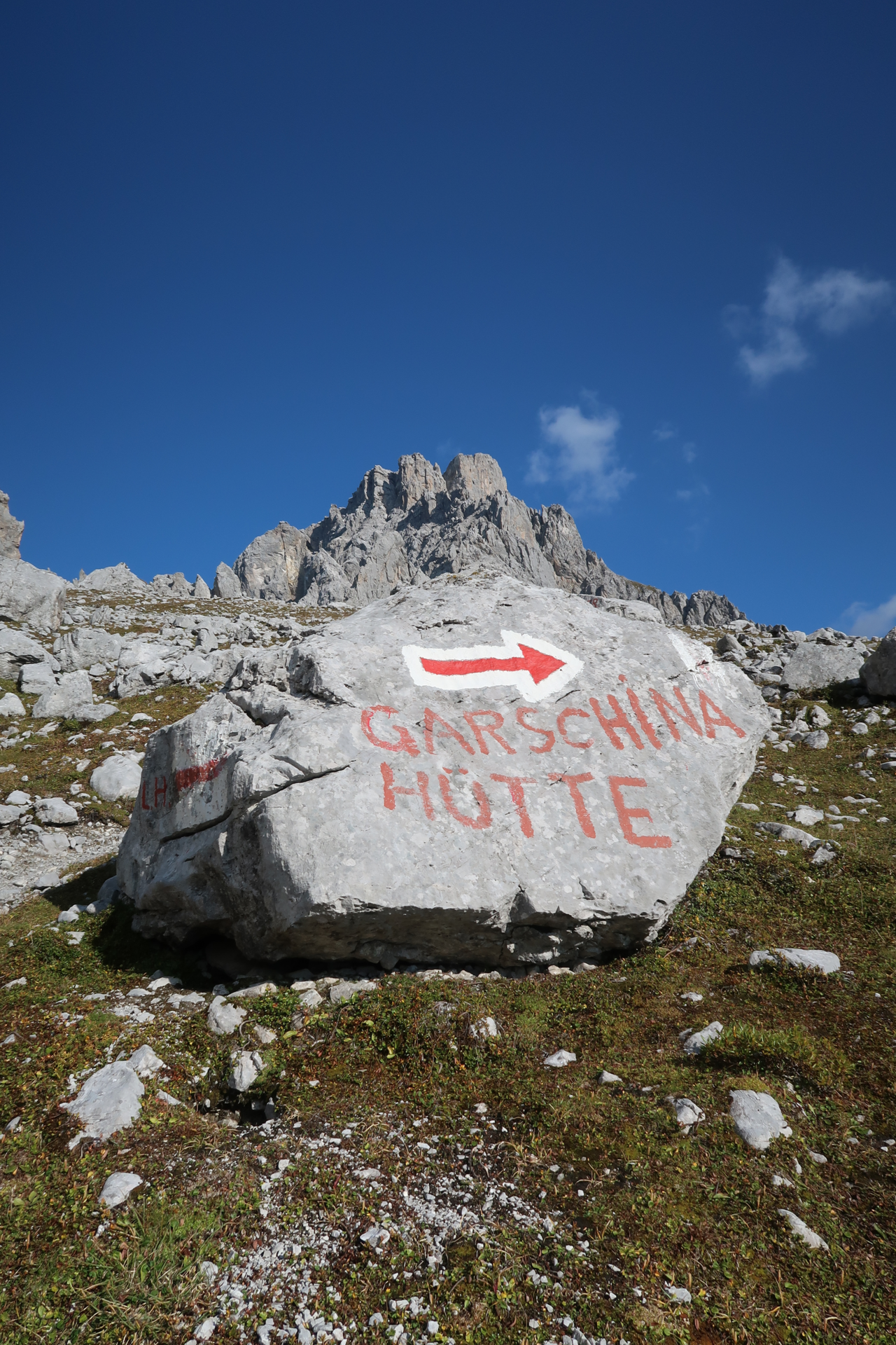 Du folgst dem Prätigauer Höhenweg unter den Kirchlispitzen vorbei am Schweizer Tor weiter unter den Drei Türmen bis unterhalb vom Drusentor. Hier ist es nun nicht mehr weit bis zur Carschinahütte. Die Carschinahütte liegt direkt unter der Sulzfluh.