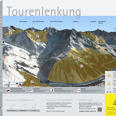 Im Valisertal gilt im Bereich der Wildruhezone von 01. November bis 30. April ein generelles Wegegebot. Skitouren und Variantenabfahrten in das Valiseratal sind somit bis auf Weiteres untersagt.