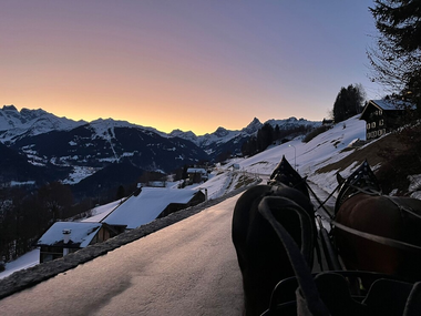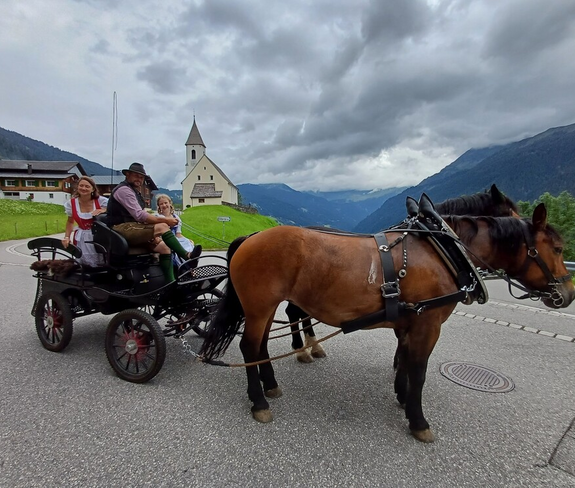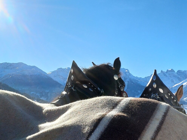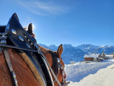 Ob Sommer oder Winter, unsere beiden Noriker Mango und Lotti fahren mit Ihnen entlang der Panoramastraße am Bartholomäberg. Hufgeklapper, Pferdegeruch und Entspannung inklusive!