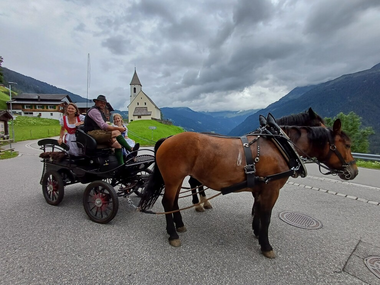 Genießen Sie die Aussicht ins Tal und auf die Berge des Montafon bei einer gemütlichen Kutschfahrt.