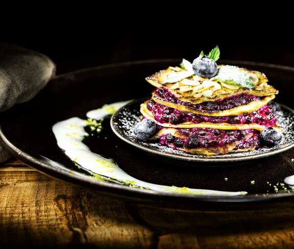 „Unsere Montafoner Heidelbeeren machen dieses Dessert so unvergleichlich lecker. Wer im Montafon wandert, der findet sie oft am Wegesrand.“