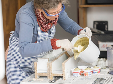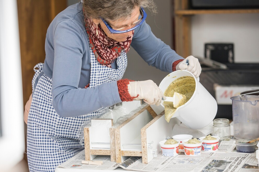 Seifen-Workshops - zuschauen, wie Angelika eine Kräuterseife rührt. Sie erklärt, welche natürlichen Rohstoffe sie verwendet, welche Heilpflanzen für die Farbe der Seife sorgt, welche Düfte miteinander harmonieren und wie sich Seifenmoleküle bilden können (ab 4 Pers.)