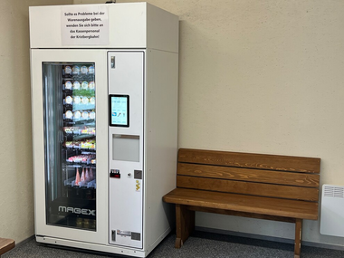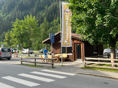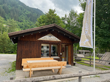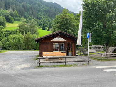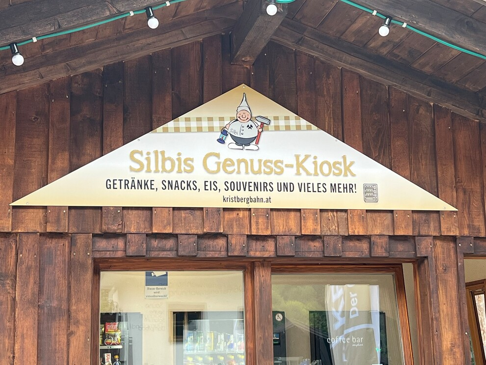 Automaten-Kiosk mit Getränken (heiß & kalt, alkoholfreie & alkoholische), Snacks (süßes, salziges, geräucherte Wurstwaren, Berg-, Fett- & Sura Kees, ...), Eis, Souvenirs (Jausenbrett, Sackmesser,...) sowie Ticketautomat (PickUp Box für Bergbahntickets)