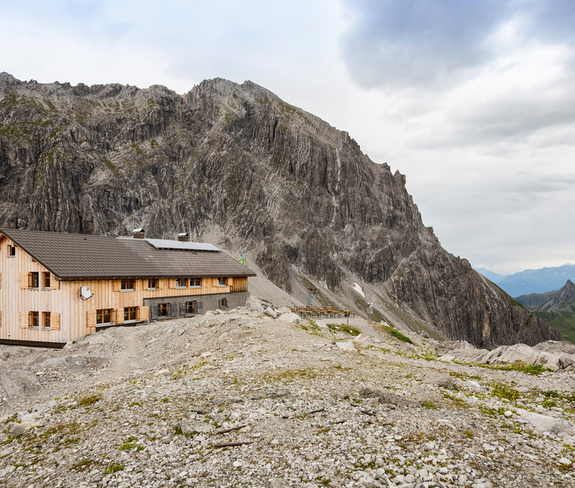 Die Totalphütte liegt auf 2.385 Meter Höhe oberhalb des Lünersees auf einem kleinen Plateau, umgeben von den herrlichen Kletter- und Wanderbergen des Rätikons wie die Schesaplana (2.965 Meter). Einst diente sie Arbeitern der Illwerke als Unterkunft, heute ist sie eine beliebte Alpenvereinshütte.