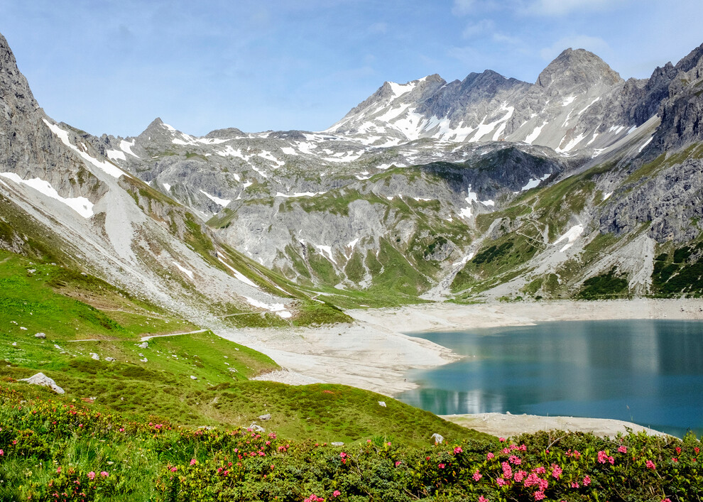 Die Hütte über dem Lünersee am Fuße der Scheßaplana.