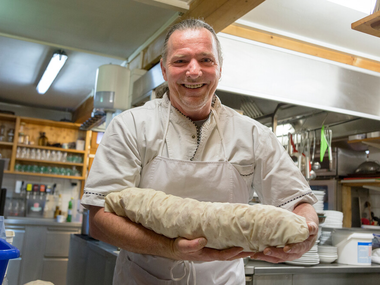 Als Dessert serviert Christian eine ganz besondere Kreation: Topfenlasagne mit Vanillesauce und Zwetschgenröster. "Die gibt es nur hier", sagt Christian stolz, denn das Rezept hat er selbst erfunden. Wer wissen möchte, wie seine köstliche Topfenlasagne zubereitet wird, macht sich am besten auf den Weg.