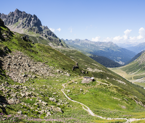 Die ViaValtellina führt dann weiter über Schlappin, Klosters-Platz, Wolfgang, Davos-Dorf, Dürrboden, Scalettapass, S-chanf, Zuoz, La Punkt-Chamuesch, Samedan, Pontresina, Bernina-Suot, Berninapass, Alp Grüm, Poschiavo, San Romerio nach Tirano. Insgesamt hat die Weitwanderung 9 Etappen. Rückfahrt mit der Rhätischen Bahn über die spektakuläre Bernina- und Albulastrecke.