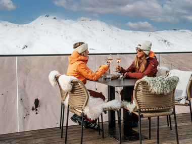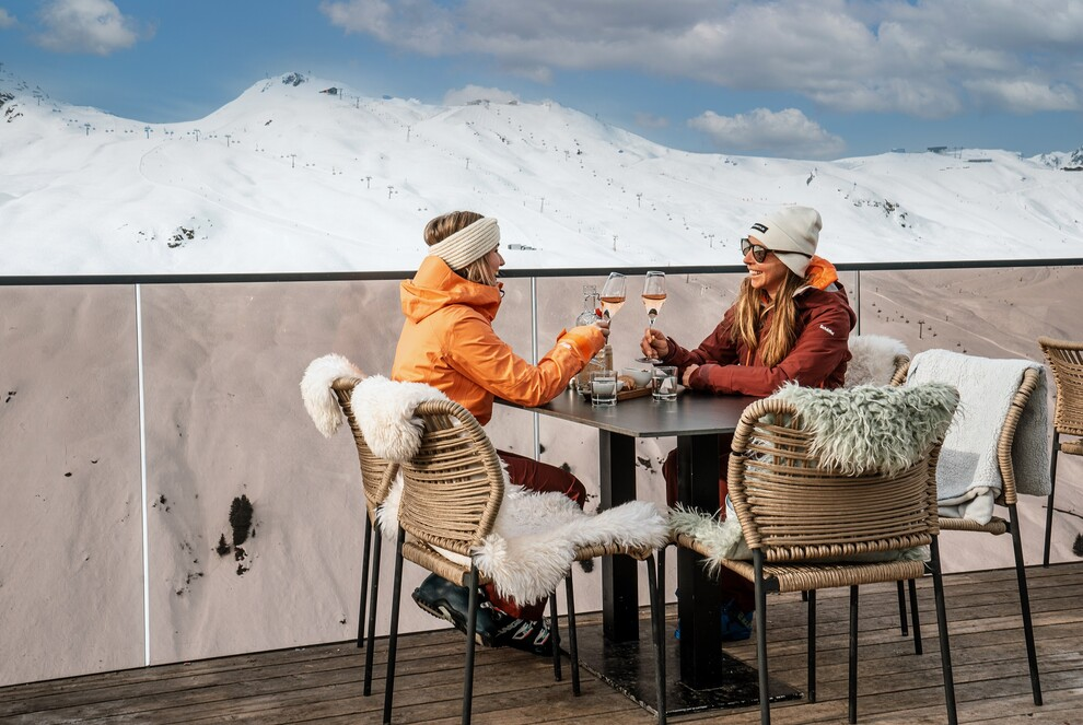 Direkt an der Bergstation der Versettla Bahn in Gaschurn, auf beeindruckenden 2.000 Metern Seehöhe, erwartet Weinliebhaber:innen das ganze Jahr über ein besonderes Genusserlebnis. Die VINNOVA bietet eine Auswahl von über 100 erlesenen Weinen, begleitet von raffinierten alpinen Tapas, die aus regionalen Zutaten frisch zubereitet werden. Ergänzt wird das Angebot durch aromatische Kaffeespezialitäten und edle Obstbrände.