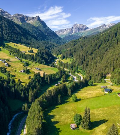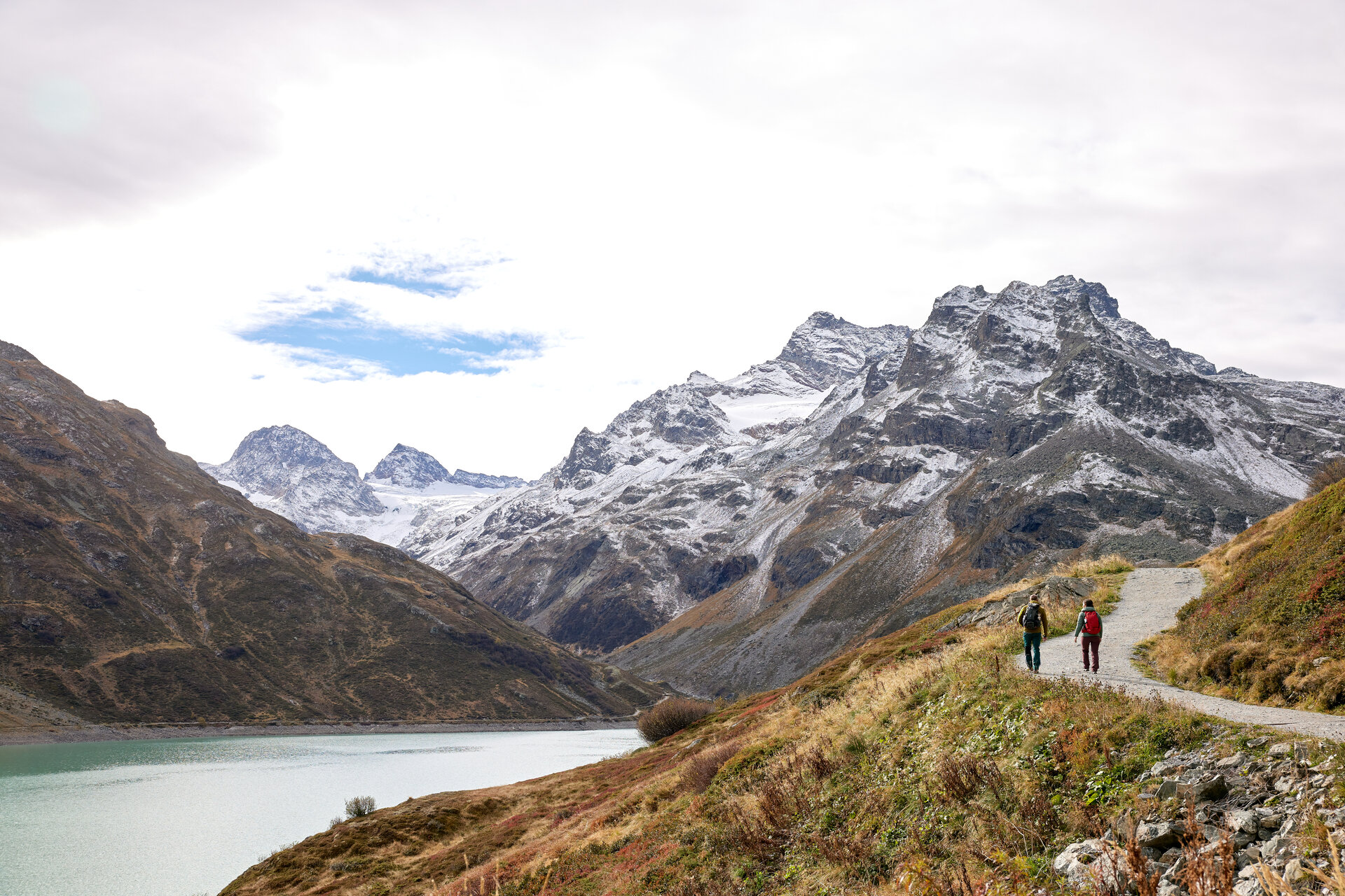 Von Partenen (1.051 m) schlängelt sich die Silvretta-Hochalpenstraße in 34 Kehren auf die 2.032 m hohe Silvretta-Bielerhöhe. Oben angekommen, eröffnet sich ein atemberaubender Blick auf die Gipfel der Silvretta – allen voran der majestätische Piz Buin (3.312 m).