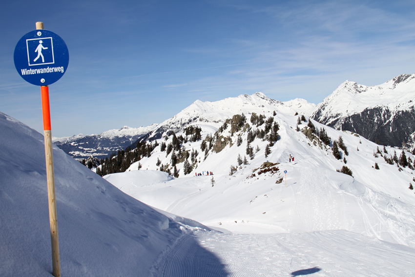 Eine sehr schöne Winterwanderung inmitten des Schigebietes Silvretta Montafon. Man kann ein atemberaubendes Panorama auf die umliegenden Gebirgsketten genießen.