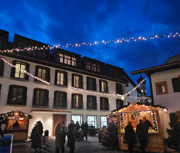 Erlebe den Zauber der Adventszeit mitten in Schruns! Unser Weihnachtsmarkt lädt Dich ein, die festliche Atmosphäre zu genießen. Entdecke die liebevoll dekorierte Häuschen mit regionalen Köstlichkeiten, handgefertigten Geschenken und weihnachtlichen Leckereien. Genieße den duftenden Glühwein und heißen Punsch unter funkelnden Lichtern.