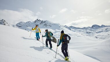 Die Skitouren-Ausrüstung hat keinen Platz mehr im Auto? Dann leihe sie Dir einfach an einer der zahlreichen Leihstationen aus. Auch wenn Du neues Material oder eine neue Marke testen möchtest, sind diese Stationen Deine erste Anlaufadresse im Montafon. Nicht vergessen: LVS Gerät, Schaufel und Sonde gehören in jeden Rucksack.
