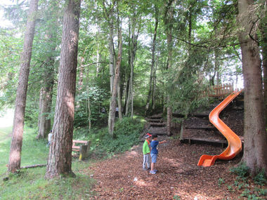 Im Mittelbereich des Vandanser Fitnessparcours - Rutschen, Schaukeln, Wippen, Klettern usw.