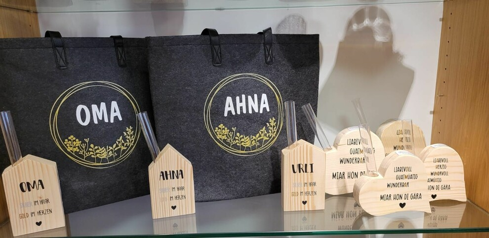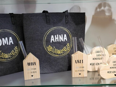 Dekoration, personalisierte Geschenksartikel, Schlüsselanhänger, Taschen, Trinkflaschen, Tassen, allgemeines Plotten uvm. – auch auf Bestellung