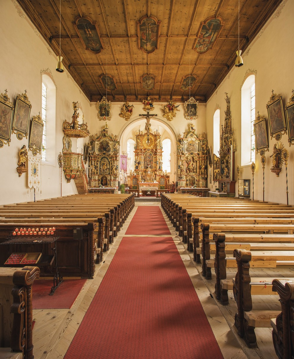 One of the valley’s most beautiful churches is dedicated to St. Bartholomew, the Baroque parish and pilgrimage church in Bartholomäberg. The foundation stone for this house of worship was laid on 26 May 1729 by parish priest Johann Franz Marent. The festive consecration was performed on 6 June 1743 by Bishop Benedikt von Rost from Chur. Bartholomäberg was the first parish in the Montafon around the year 1100. The oldest and most valuable art treasure of the church is the Roman processional cross from the year 1150. A duplicate is on display in Bartholomäberg parish church. Other attractions of this parish church: