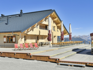 Winter: Large sun terrace with free deckchair hire, après-ski bar Cin-Cin
