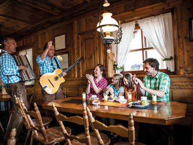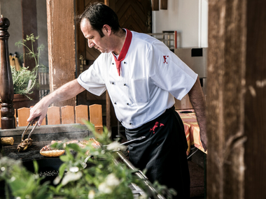 With its wood paneling, which harks back to old-fashioned farmhouses, the largest of our mountain restaurants provides a cozy chalet atmosphere. Since 1989, Nova Stoba's chef, Kurt Woltsche, has been spoiling guests with international and regional delicacies, often reinterpreting them. The game used in the regional dishes comes from the forests surrounding the restaurant, and we hunt this ourselves.