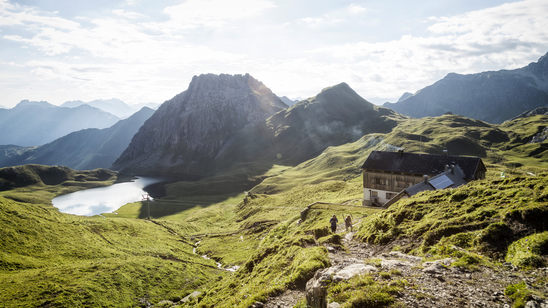 After a short steep climb, the Schwarzhornsattel is reached from here. Now it goes down into a gravel cirque below the rocky slopes of the Schwarzhorn. A short counter ascent follows, and over the further high plateau of the Ried, the Tilisunahütte is reached. The Tilisunahütte lies above the lake of the same name with the Tilisuna Seehorn. The view from the hut terrace shows the massive rock walls of the Weißplatte. The OeAV hut is located at the junction of several long-distance hiking trails and is also popular as a starting point for climbing the Sulzfluh.