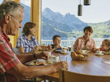 Enjoy the surrounding mountains on the sunny lakeside terrace of the turquoise-blue ‘jewel’ of the Rätikon